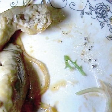 在吃干鍋肥腸時,懷孕的弟媳夾起一塊塞進嘴里,剛嚼了一口,感覺有東西從嘴里流出來,滴到面前的食碟里。