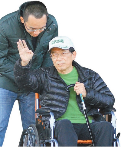 【香港商報网訊】1月5日臺灣前領導人陳水扁獲準保外就醫1個月。在辦理交保手續后,當天下午3點半陳水扁坐著輪椅,由兒子陳致中推出服刑了6年40日的臺中監獄。陳水扁上車前先向在場民眾揮手致意,由於大批支持者蜂擁而上,車隊行進非常緩慢,由警車護送開道。陳水扁則搖下車窗,不斷向民眾揮手,但沒有發表任何談話。