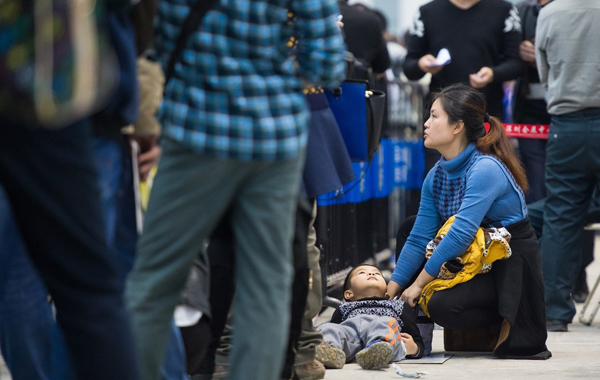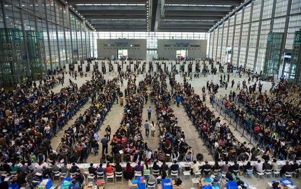 2015年1月5日,廣東深圳,深圳會展中心8號館,市民排長隊為未上牌的新購汽車辦理公證手續,證明自己買的汽車是在深圳限牌政策前購買的。