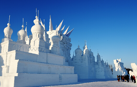 第27屆哈爾濱太陽島國際雪雕博覽會的主塑《綻放》于1月5日完成二期雕刻,新增加了俄羅斯建筑、天鵝、祥鳥、冰花等元素。本屆太陽島雪博會主塑采用群雕組合、連續創作、分期雕刻的方式,在不同時期給游客帶來不同的視覺享受。目前主塑的主體雕塑長度160米,整個群雕總長度達360延長米,占地1.2萬平方米,高達39米。