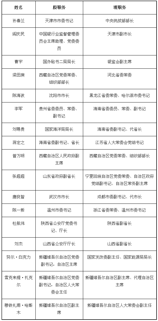 不妨先來看看,在各個省市,聚光燈下都有哪些“政治明星”,都有哪些省部級以上官員進行了工作調整。