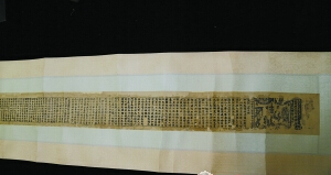 五代早期的版刻經文《寶篋印陀羅尼經》,據說當年吳越王在修建雷峰塔的時候每塊磚背后都藏有一卷這樣的經文,但由于天災人禍,目前留存于世的完整卷已不到10件,這也是這件經卷第一次在廣州展出;