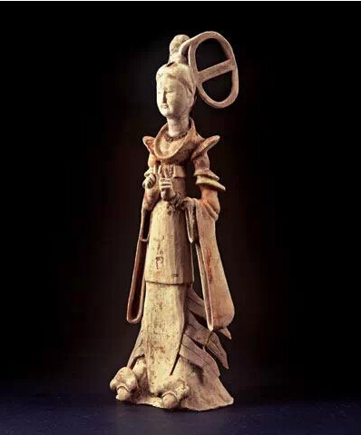 唐彩繪雙環望仙髻女舞俑,陝西歷史博物館藏。“胸前瑞雪,眼底桃花”也許就是這般模樣。