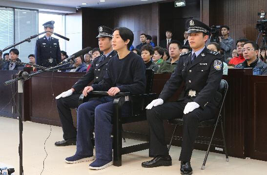 成龍之子房祖名(原名:陳祖名)容留他人吸毒一案1月9日在北京市東城區法院開庭審理,并當庭一審宣判。法院認為,房祖名主動投案、認罪態度好,判處其有期徒刑6個月,罰金2000元人民幣。圖為房祖名在庭審現場受審。