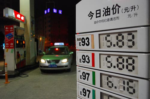 1月13日零點,一出租車車主在鄭州市農業路一加油站加油。