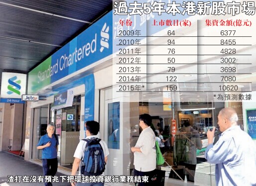 中環晚來風急,渣打(2888)不動聲色結束投行業務,令業界譁然。有投行界人士直言,行業最壞時刻已過,燒到埋身的機會不大,更預計今年香港IPO繼續旺丁旺財,數目按年增三成,集資金額增五成。香港商報記者 張威紅
