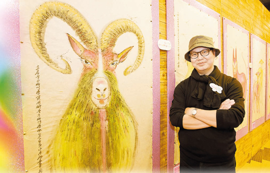 在荃新天地布置的展廳,面積不過千呎,但懸掛在牆壁上22幅立軸畫上的「羊」氣勢不遜奔騰之馬,每隻羊的眼神各異,遠觀時,更覺幾十隻肥壯的山羊、綿羊彷彿走下畫卷,而作品用擬人手法所刻畫的羊個性,當中,「一定是我太帥把人家嚇走了 」、「我喜歡做夢,我常常幻想自己靈魂出竅,頓時離開這個混亂的世界」、「吾乃粵劇紅羚。看倌有禮」、「我有最自信的腳步」、「隨時隨地用紅色耳機『懶羊羊』聽音樂是一種生活態度」、「我穿起用孔雀毛做的大衣參加盛會,艷壓群羊」、「我喜歡無邊無際的圓點,炫麗得令人目眩神迷」等等,拉近了觀者的距離,特別是令小朋友倍感親切。