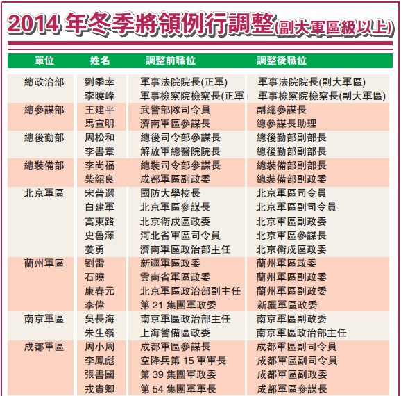 分析認為,這或與解放軍反腐不斷打下老虎有關,迫切需要對軍隊人事進行調整。