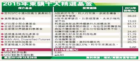 東驥研究部每年均會選出十隻精選基金,除要求該些基金過往的表現穩定外,亦會因應市場走向而選擇Al-pha基金或Beta基金。去年推介的精選基金,以富蘭克林生物科技新領域基金及富達基金─環球科技基金表現佳,升幅分別為35.56%及18.61%。
