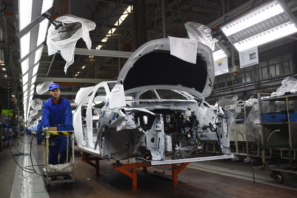 1月14日,工人在奇瑞汽車大連生產基地生產線上工作。新華社記者潘昱龍 攝