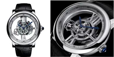Astrotourbillon 天體運轉式陀飛輪由卡地亞首創與2010年,自問世以來即引發制表業競相研究。結合大氣磅礴的表盤,該表款如今已成為卡地亞高級制表系列中最具代表性的復雜功能作品之一。