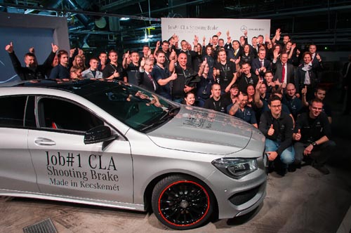 1月20日,在匈牙利中部凱奇凱梅特的梅賽德斯-奔馳工廠,人們慶祝奔馳新款CLA獵裝車CLA Shooting Brake首車下線。