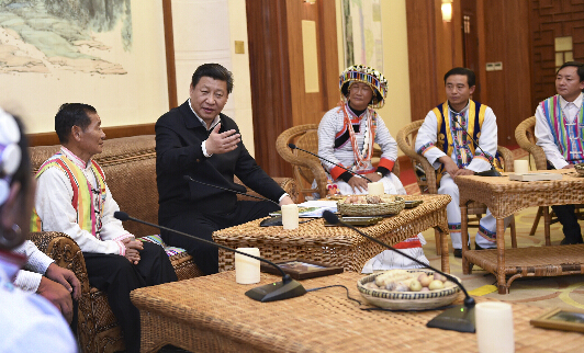 图为習近平20日在昆明親切會見怒江州貢山獨龍族怒族自治縣干部群眾代表。