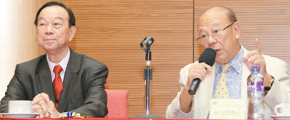 藍鴻震(右)與劉皇發相交40多年,年逾古稀的他,現時仍不時與發叔在活動上相遇。