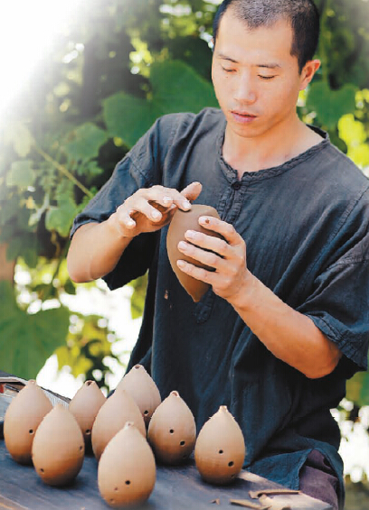 「煉泥、制坯、修型、調音、燒制、精調,做一隻真正意義上的塤并非易事。」這是張塤的深切感受。張塤發現,塤的造型容易改變,而要保證塤的音色卻是難上加難,「這要求制塤人除了是吹塤人,還得是賞塤人。」在不斷的嘗試中張塤終於成功的制成了U型孔的塤,并且通過對窯爐的改造,使得塤在燒造過程中形成各種奇趣的窯變,使得每件作品不僅是可以演奏的樂器更是獨一無二的藝術品。「經過沉澱,提升了自己的修養,反而推動了我對塤制造與演奏的理解,這就是塤道,它教給我們的不僅僅是音樂,還有做人做事,在這個浮躁的社會里,我們迫切地需要它,需要它的平和之氣。」張塤介紹:正是因為用心,塤才能演奏出感動人的音樂。