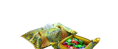 當然故宮展位的心思還不僅僅是這些展品,而是他們會模擬一種產品在使用中的狀態來排兵布陣。比如展示柜上會放上糖果和紙巾,以便前來參觀的客人隨意取用。糖果盒和紙巾盒就是故宮自己的產品,還有桌旗和餐布也是放置在桌上讓人一看就想坐下來吃頓飯。還有汝窯的仿古瓷器也會插了花組合擺放,讓人一看就覺得自家博古架上應該有一套。
