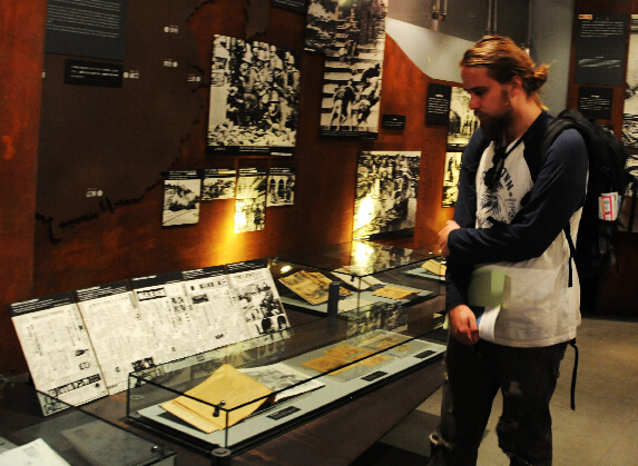 圖為2014年3月4日,參觀者在日本大阪國際和平中心內參觀。(新華社記者馬興華攝)