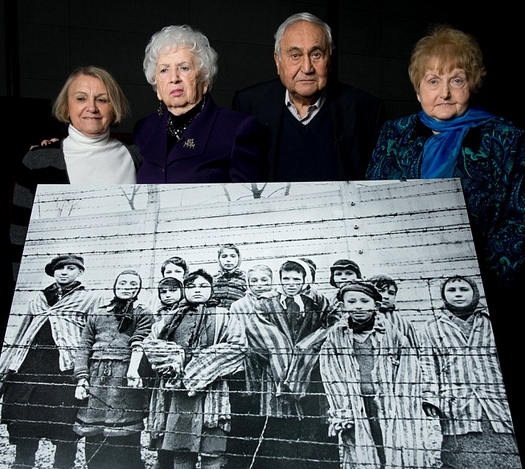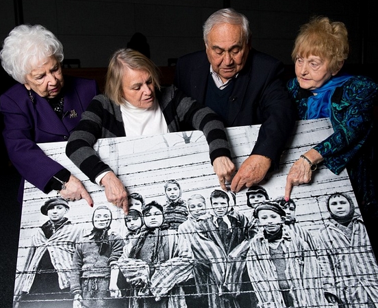 據《每日郵報》消息,在奧斯維辛集中營解放70周年前夕,奧斯維辛集中營的幸存者們參觀納粹集中營。四個幸存者舉起巨型照片找到當時的自己,這是他們還是孩子時期的照片。奧斯維辛集中營在1945年第二次世界大戰被蘇聯軍隊解放。