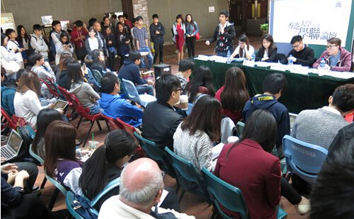 超過50名港大學生出席“港大學生會退出學聯論壇” 大公報攝