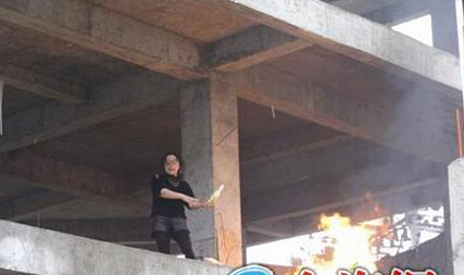 執法人員勸說其開門,配合執法工作,遭其拒絕,但柯某的妻子趁執法人員不備,迅速爬上違法建筑的二樓,點燃事先準備好的瓶裝可燃液體向執法人員投擲,并搬出兩罐煤氣罐威脅執法人員。同時在自己身上澆灌可燃液體并手持打火機,辱罵執法人員并表示要同歸于盡,阻止執法工作開展。現場執法人員努力安撫其情緒,并立刻向119和110報警。