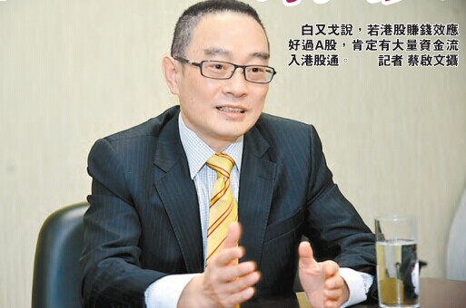 滬港通開通,中資券商被視為最受惠一群,股價被市場炒翻了。白又戈笑言,身為中資券商一員,有責任把這產品做好。惟新產品能產生多少效益,「對業界而言,滬港通就是多了一個新投資品種,不求馬上有回報。」