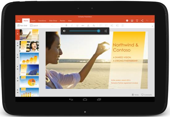 微軟幾周前面向Android平板電腦用戶發布了預覽版Office應用,這些應用的全球下載總量已達25萬次。去年微軟發布了iPhone和iPad版Office應用,其全球下載量已超過8000萬次,目前在iOS應用商店中仍是排名前十的生產力應用。