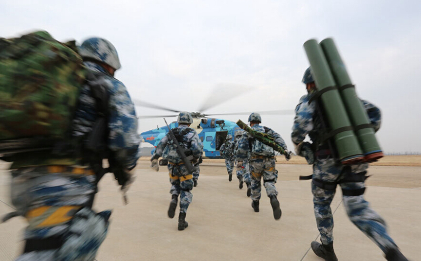 現場擔任指揮的直升機團領導介紹:索降作戰有著出其不意、攻其不備的特點,其“蛙跳”式大縱深突擊,為“點穴”式破壞敵作戰體系提供了有力手段。