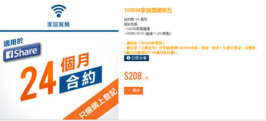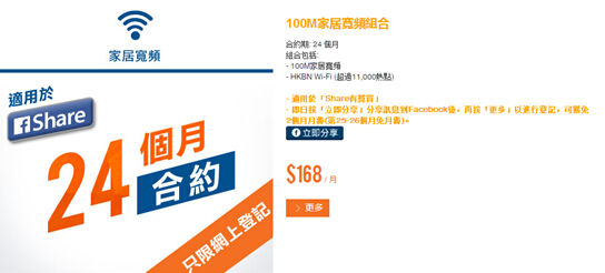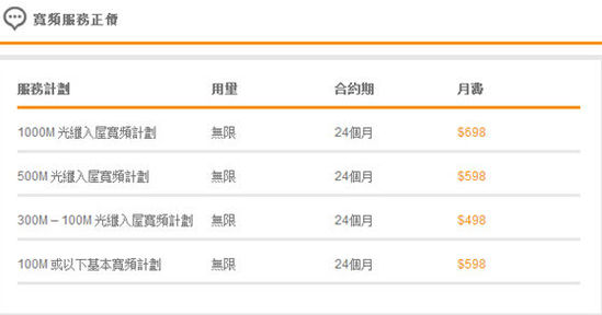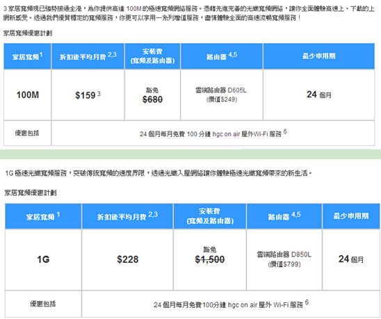 先來說說HKBN(香港寬頻),作為香港主流的寬頻運營商之一,HKBN一般提供的是100M到1000M的寬頻上網服務。和內地類似,香港的運營商熱衷於推薦24個月的寬頻合約計畫(類似年繳)。選擇24個月100M寬頻服務需要每月168港元的服務費用,選擇24個月1000M寬頻服務需要每月208港元的服務費用。值得注意的是,一旦提前終止服務,必須繳納大筆的違約金。