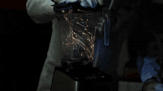 在節目中,迪金遜幾乎將這些磁鐵球攪拌了一分鐘的時間。攪拌開始後幾秒鐘之內,攪拌機內部便開始出現火花,很快整個攪拌機內部便呈現出火焰的亮黃色(如圖)。最後,迪金遜把杯口向下倒出了殘餘物,只剩下一堆黑色的固體殘渣。