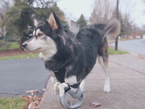 小狗德比出生時兩條前肢就發育不全,不過好在它的收養者塔拉-安德森(Tara Anderson)恰好是3D Systems公司的員工。在那裡它獲得了一套專門為它打造的假肢。Derby並不是第一隻因為患病無法行走,而在人類的幫助下重新站起來的動物。早在很久之前就已經有了小豬和山羊在小型輪椅的輔助下,可以行走的案例。但是小型輪椅對於動物而言過於笨重、累贅,顯得十分不靈活。