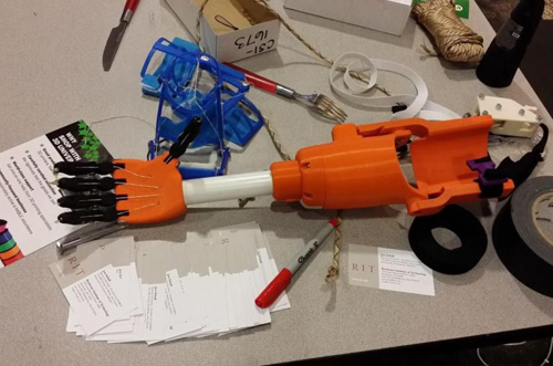 2013年來自美國西雅圖的設計師伊萬-歐文(Ivan Owen)和南非約翰尼斯堡的木匠理查-范-艾斯(Richard Van As)進行合作,為一名5歲的男孩免費設計和製作了一隻全機械假肢右手:Robohand。他們從3D印表機廠商 MakerBot的免費3D列印方案分享平臺Thingiverse上尋找到了足夠的資料,然後用Replicator 2桌面3D列印機制作了這只假手。這只機械假手完全由3D列印技術製作,材料加人工僅為150美元左右,成本遠低於傳統假肢。
