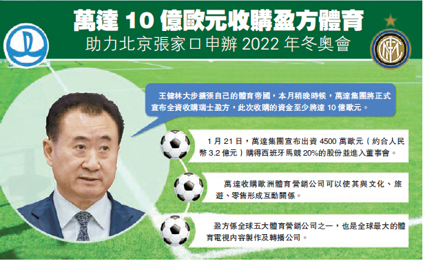 萬達體育帝國再擴張 傳10億歐元收購體育營銷公司盈方