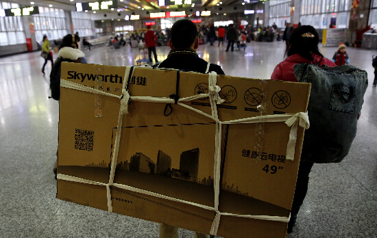 2月4日,乘坐K5576次列车的旅客在铁路上海站检票上车。