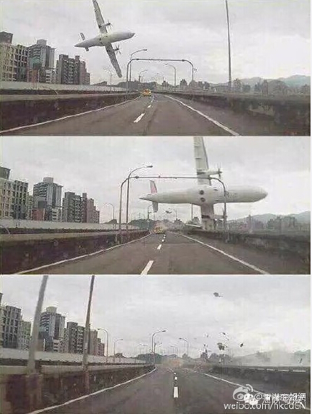 行车记录仪记录下台湾飞机擦撞高架桥画面