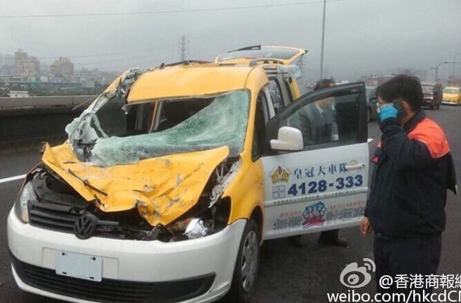 被飞机撞到的的士。