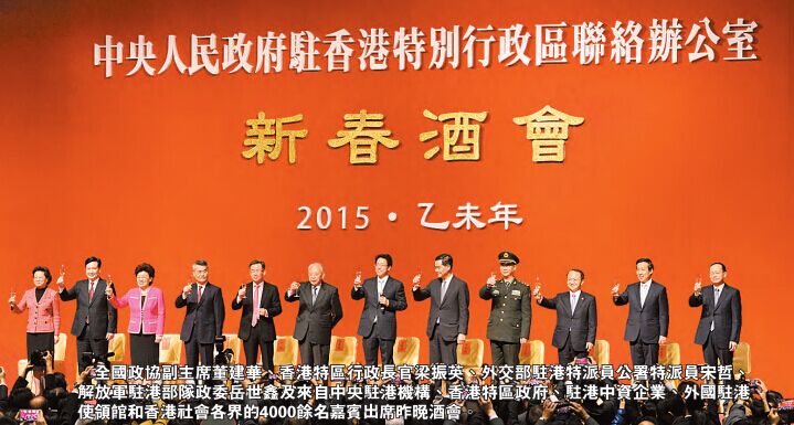 【香港商報網訊】中聯辦昨晚舉行新春酒會,主任張曉明致辭時強調,不能容許藉口高度自治而排斥中央對港的管治權,散布「港獨」言論,甚至公然以非法方式與中央搞對抗,他強調高度自治非「港獨」藉口。他同時以「點讚」方式讚揚國家與本港去年都有不平凡的經歷及成就,認為「回首愈深邃,前瞻愈智慧」,大讚行政長官梁振英與警隊妥善處理「佔中」事件是「處變不驚」。(張曉明致辭全文刊A2版) 香港商報記者 戴合聲