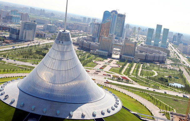 新首都并不大,站在城市的最高点——97米的巴伊杰列克观景塔上就能俯瞰全城以及城市外的沼泽与湖泊。阿斯塔纳方圆1200公里的范围内都是平坦的草原,因为高楼不多,在城内的任何地方,都能看到旷远绵渺的天际线。