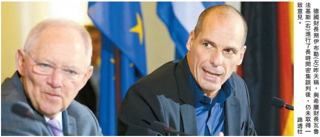 消息人士稱,除非希臘的「三駕馬車」國際債權人提高150億歐元的短期借貸上限,希臘政府可能在2月25日就用完現金。三周前,國際官員還稱希臘可以撐到今年年中。觀察人士稱,德國有的是時間與希臘談判,但希臘的「喪鐘」卻隨時可能敲響。不過,如果齊普拉斯政府動用社保基金并暫停支付一些開支,可能還能再支撐額外幾周。但到3月底,他就會面臨「生死抉擇」︰要麼接受國際債權人附加條款的救助金,要麼就揮手告別歐元區。