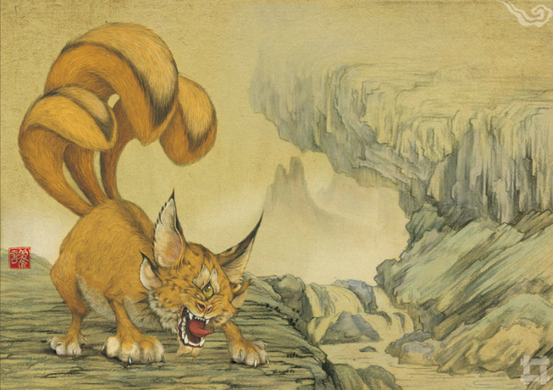 中央美术学院绘本创作工作室刘力文根据《山海经》中所描述的神异怪兽的形状,绘出了这些怪兽的样子,命名为《山海兽》。讙(huan) 翼望山的畏兽,样子长的像狸猫,体格娇小,独目,三条尾巴,它可以模仿上百种动物的叫声,传说肉可以入药。