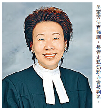 【香港商報訊】近日數度公開表示違反「限奶令」案件猖獗的粉嶺裁判法院主任裁判官吳蕙芳,昨日審案時「雙語并用」,對着23名違反「限奶令」的被告人提問:「自己國家出產的奶粉,自己國民都不敢食,不覺可悲嗎?」她坦言,不但覺得可悲,更認為是「國恥」!除奶粉外,有3人更利用嬰兒手推車運載逾百磅食米出境,被控企圖輸出儲備商品罪。吳官直言不相信他們帶米是自己食的解釋,更警告若下次利用小童犯案,必定重判。