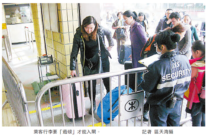 他說,根據經驗,水貨客多數會使用A出口,職員會勸喻他們盡量使用人流較少的B出口;屆時亦會有圍欄管制人流,如有乘客攜帶大型行李,車站人員會指示乘客為行李過磅,並呼籲乘客不要攜帶尺寸及重量超過規定的行李。現時的行李管制是其長闊高總和不得超過170厘米,任何一邊的長度不可超過130厘米,重量則不得超過23公斤。