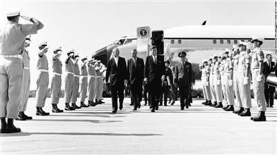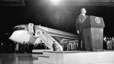 尼克松(1969年-1974年)1972年尼克松搭乘尾號SAM27000的“空軍一號”,訪華開啟中美建交新篇章。圖為他訪華回國後講話。