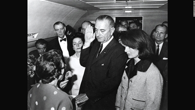 約翰遜(1963年-1969年)肯尼迪遇刺後,時任副總統約翰遜在“第一夫人”傑奎琳見證下,在SAM26000上宣誓就職。