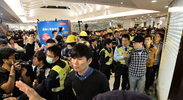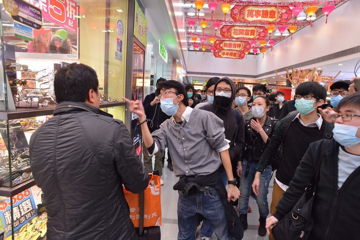 示威者冲进商场,对内地顾客进行无端滋扰和辱骂。