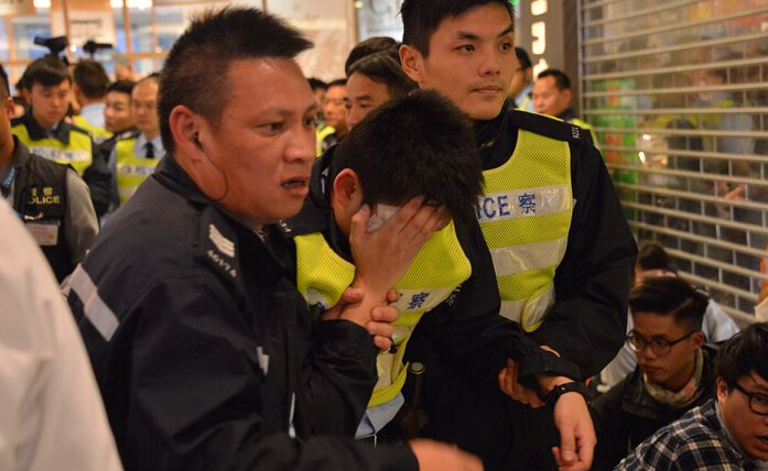 就屯门昨日爆发历来罕见的大型警民冲突,青山分区指挥官戴雄健警司昨晚深夜表示,有关团体就是次游行已获警方发出不反对通知书,亦同意遵守附加条件,惟有参与人士未有遵守协议,突然偏离原定路线及冲入商场挑起事端,警方多番警告无效,遂采取最低武力包括动用胡椒喷雾驱散聚集的群众,目前共拘捕9男4女(16至74岁),分别涉及非法集会、袭警、在公众地方打架、阻差办公等罪名。戴雄健续指,一名警员被冲入商场的多名示威者从後推跌地上,继而遭多人用脚踢头至一度昏迷,幸好送院後回复清醒,其右颚骨受伤,需要留医,警方就暴力行为予以谴责。