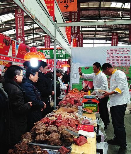 記者剛走進B1館,就見到了正在買臘牛肉的趙大爺,攀談后得知,今年78歲的趙學敦老人是安康水電三局的職工,他說,“兒子在西安工作,今年把我們老兩口接過來過年,我正發愁不知道去哪兒買年貨呢,正好昨天看新聞,才知道這里有年貨會,一大早就和老伴過來了。”