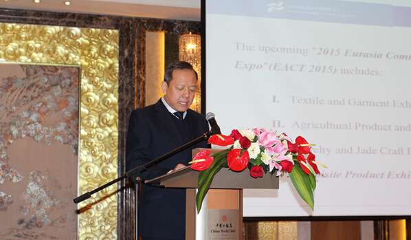 日前,2015亞歐商品貿易博覽會推介會在北京舉行。中國—亞歐博覽會秘書長李靜援、商務部外貿發展局局長孫成海、中國紡織品進出口商會副會長張新民等出席了推介會。