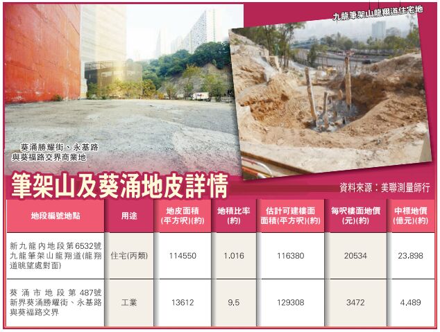 至於早前接獲11份標書的葵涌勝耀街、永基路與葵福路交界工業地,由信興商業發展投得。該地皮面積1.3612萬平方呎,最高可建樓面約12.93萬平方呎,以中標價4.489億元計,每呎樓面地價約3472元。該地皮毗連同一財團旗下的信興中心,料可產生協同效應。