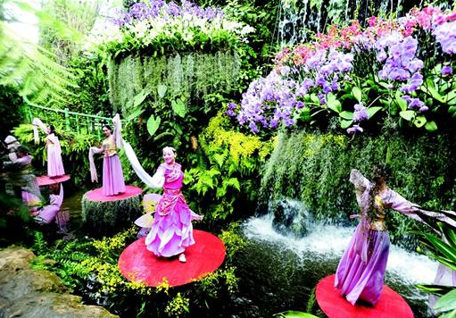 在恒溫20℃的景觀溫室內,滿眼郁郁蔥蔥的熱帶植物和色彩艷麗的熱帶蘭花,容易讓人忘記冬季的寒冷與蕭瑟。美洲蘭花之王卡特蘭、東南亞蘭花之后蝴蝶蘭、泰國森林女神石斛蘭、韓國蘭花新星大花蕙蘭、精靈舞者文心蘭……9大類100多個熱帶蘭花品種在此爭奇斗艷,8000多株熱帶蘭將新年裝扮得熱情洋溢。