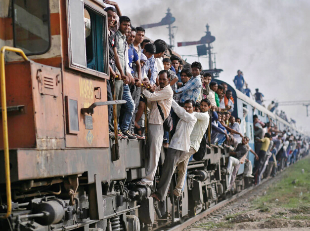 ▲7图:7月8日,在印度洛尼,乘客搭乘一列超載的火車出行。
